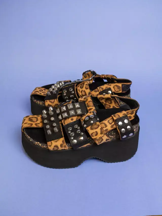 Camille es para las que se atreven a ser diferentes. Con un diseño que mezcla animal print y tachas metálicas, estas plataformas son el complemento perfecto para looks de día y noche. Combinalas con shorts y tops relajados para un estilo casual o con vestidos largos para un look más atrevido.
