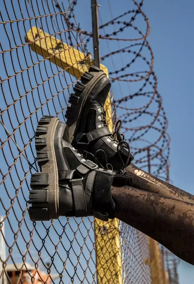 Hay algo hipnótico en un eclipse: ese instante donde la luz y la oscuridad se enfrentan cara a cara. Así nacen estos borcegos, donde el negro absoluto lo cubre todo, pero cada textura —cuero, gamuza, herrajes— revela una capa distinta de rebeldía y profundidad.