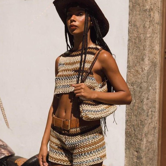 • Riñonera cruzada + pelo con trencitas o pañuelo.