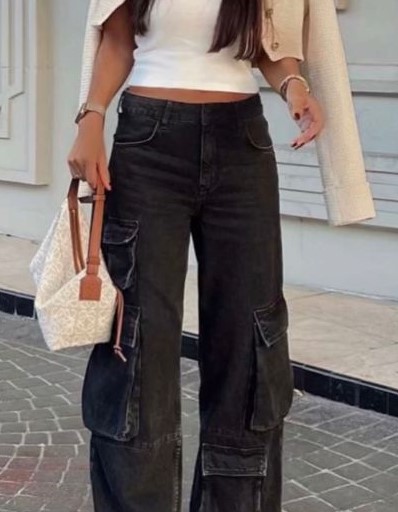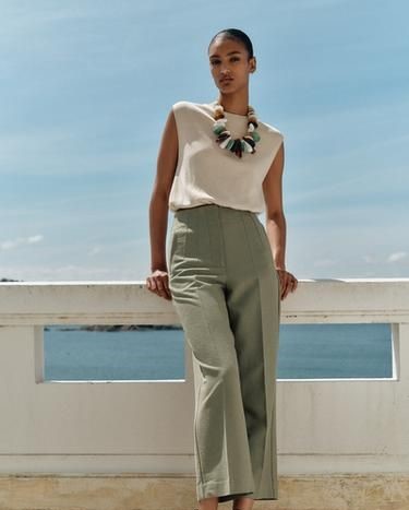 • Pantalón sastrero tiro alto color borgoña o verde oscuro.