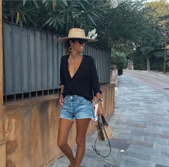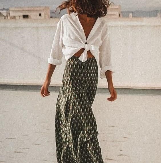 • Sweater liviano sobre los hombros + aros de piedra o cerámica.