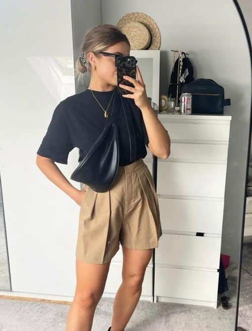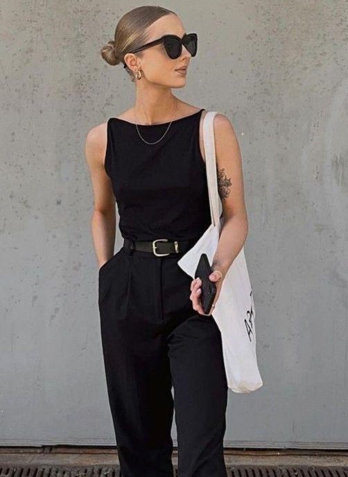• Pantalón sastrero con tajo + musculosa entallada.