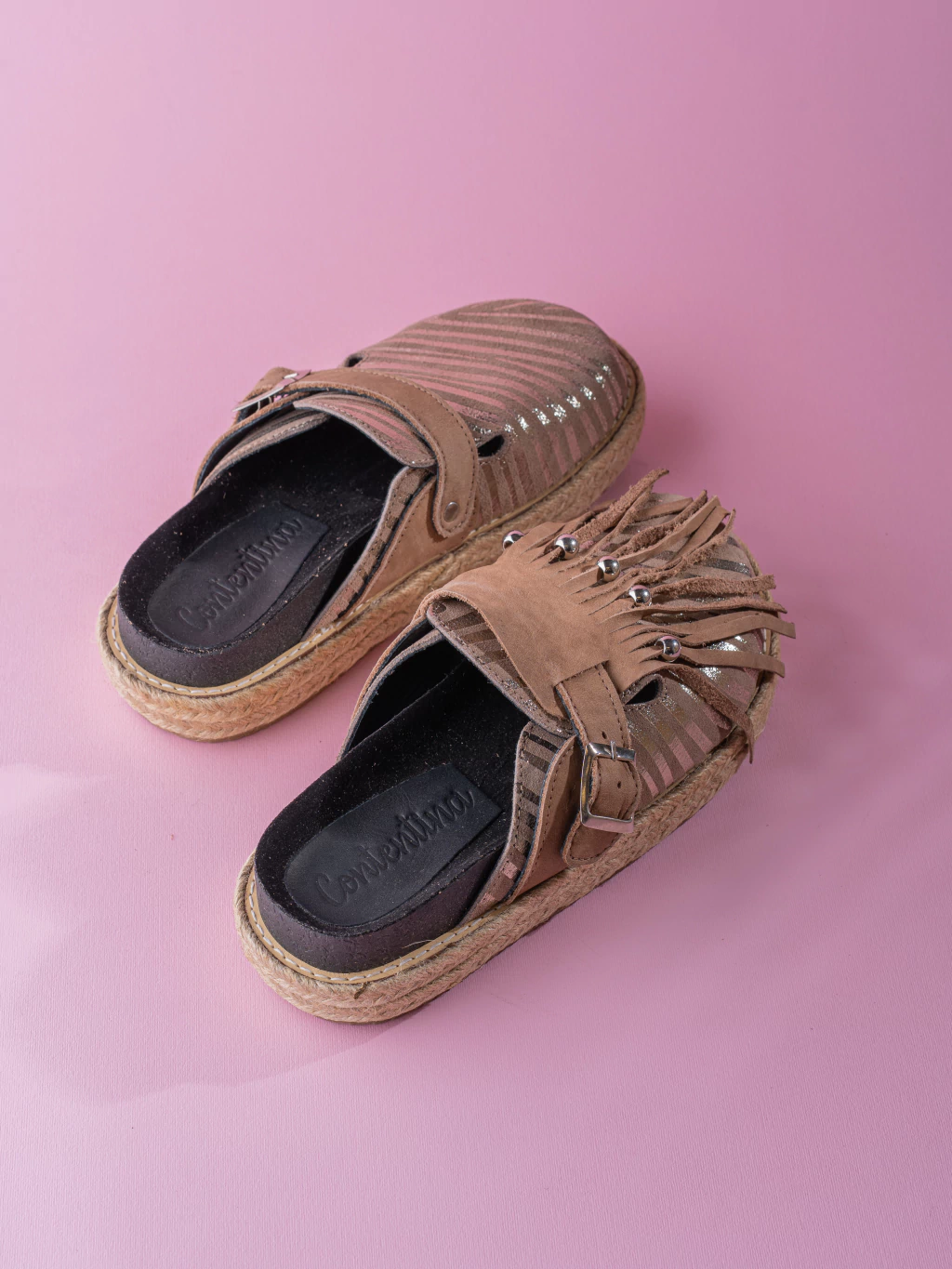 Las Perla son la perfecta combinación de elegancia bohemia y comodidad. Con su plataforma de yute artesanal y los flecos que bailan con cada movimiento, estos zuecos capturan la esencia de un estilo relajado, pero lleno de detalles sofisticados.