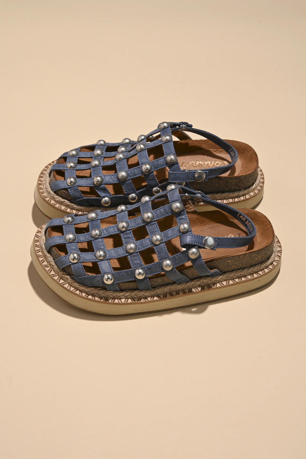 Color: Azul con tachas plateadas